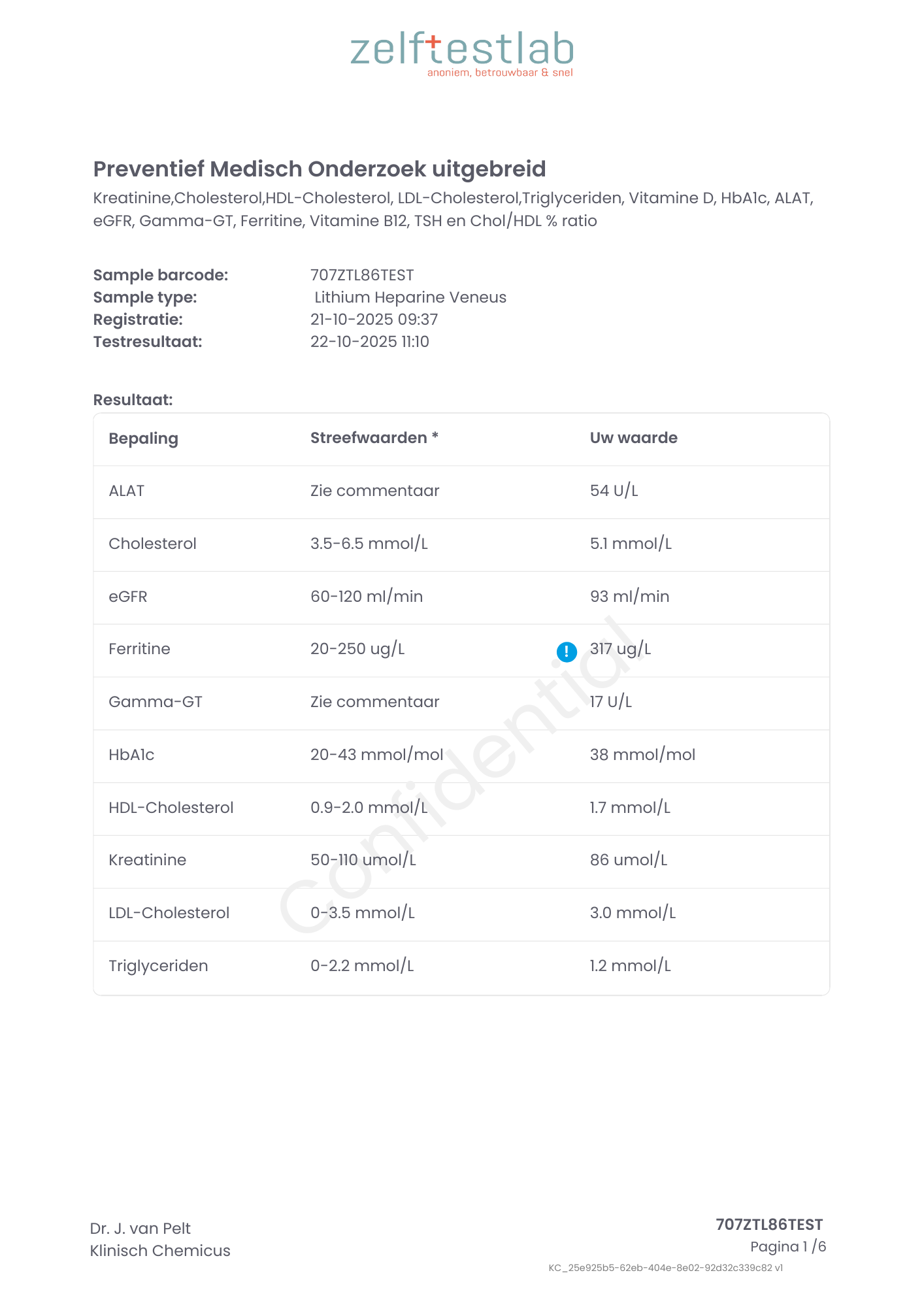 Onze preventieve test uitgebreid is een bloedtest waarmee je eenvoudig inzicht krijgt in mogelijke afwijkingen in je bloed. De test kan alleen worden afgenomen op onze prikpost via een venapunctie, vanwege de vereiste nauwkeurigheid. Voor deze service worden geen extra kosten gerekend. Wel is het noodzakelijk om vooraf een afspraak te maken. Neem contact op met onze klantenservice voor meer informatie of om een afspraak in te plannen.
