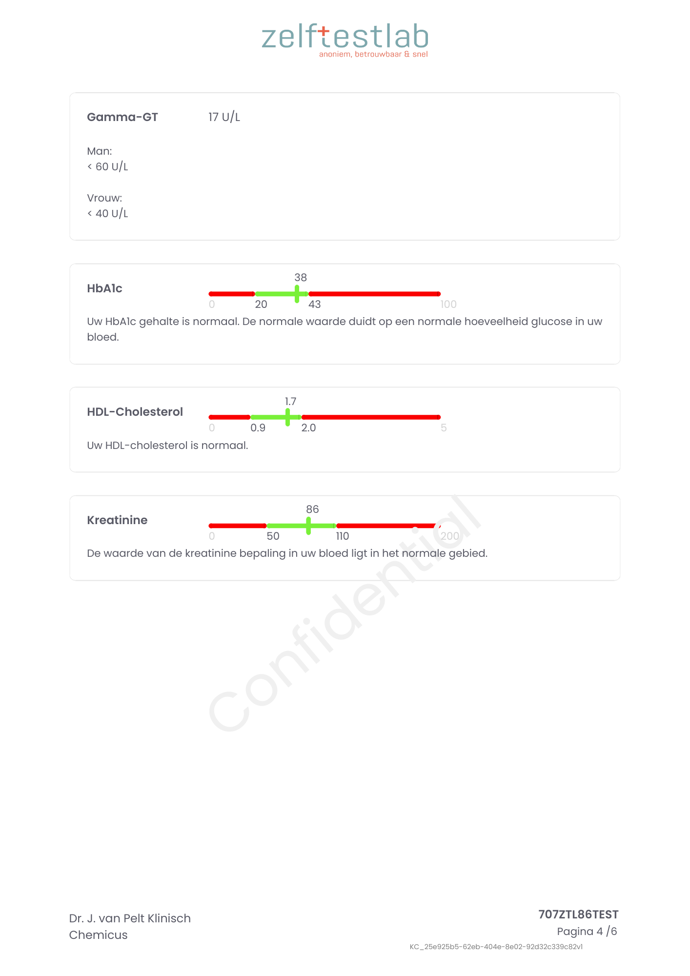 Onze HbA1c-test meet je gemiddelde bloedsuikerspiegel over de afgelopen 2 tot 3 maanden door te kijken naar de hoeveelheid glucose die zich heeft gehecht aan hemoglobine in de rode bloedcellen (Geglyceerd Hemoglobine). Het biedt inzicht in de mate van bloedsuikerregulatie en helpt bij het diagnosticeren van diabetes of prediabetes, evenals bij het inschatten van het risico op complicaties zoals hart- en vaatziekten.