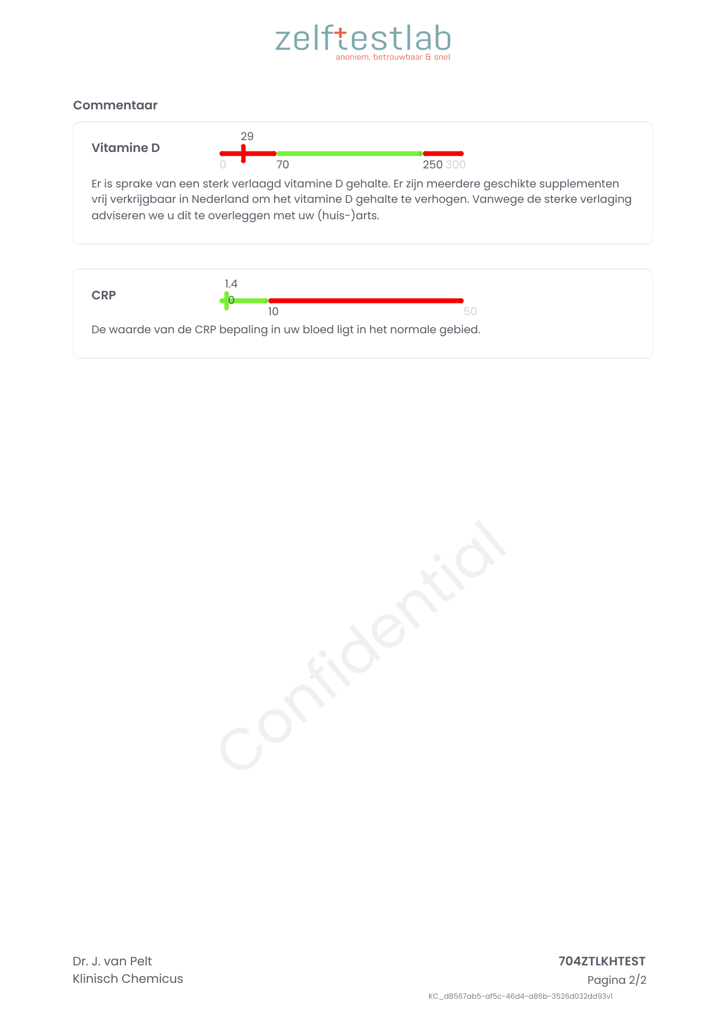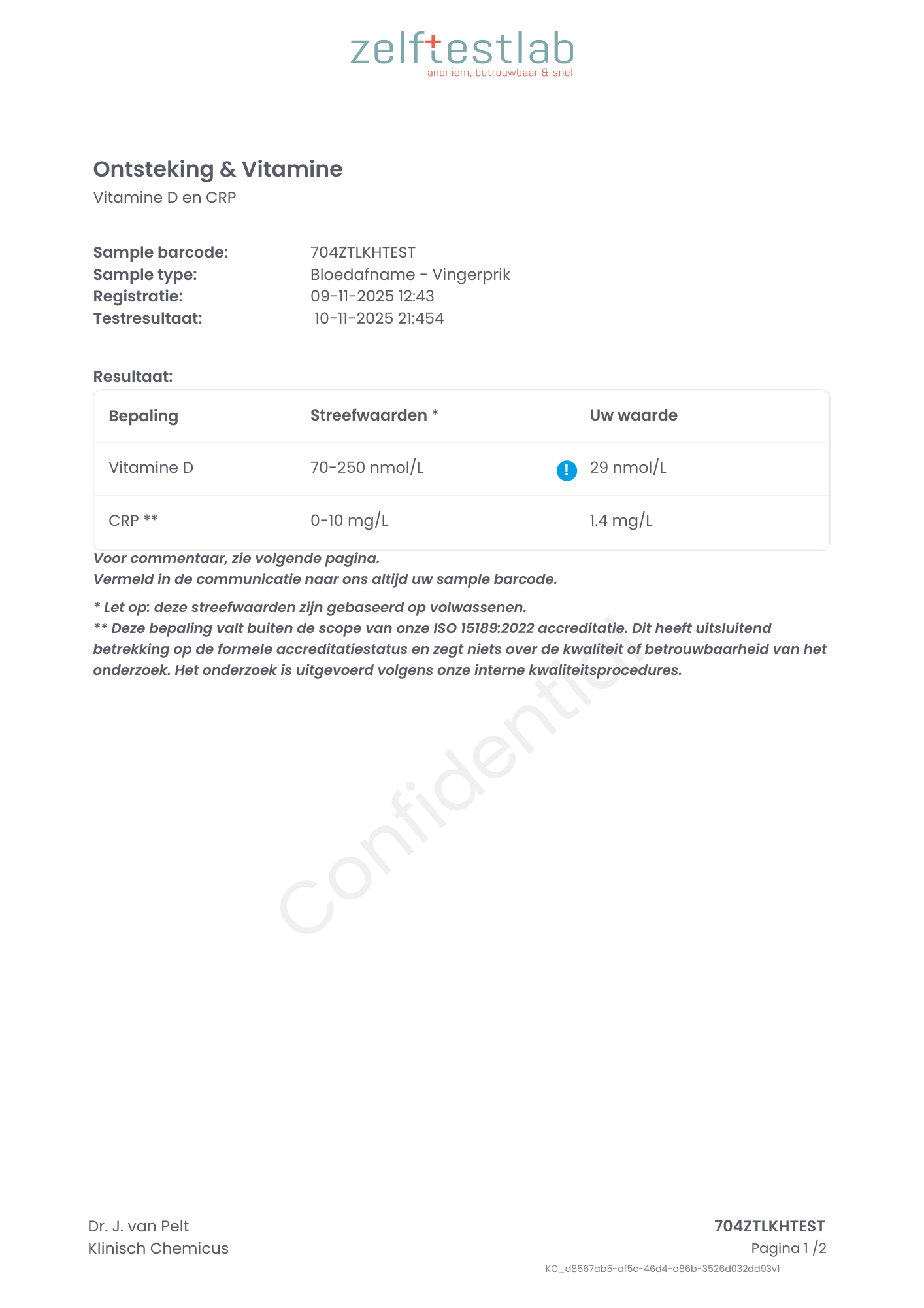 Testresultaten vitame D + CRP test