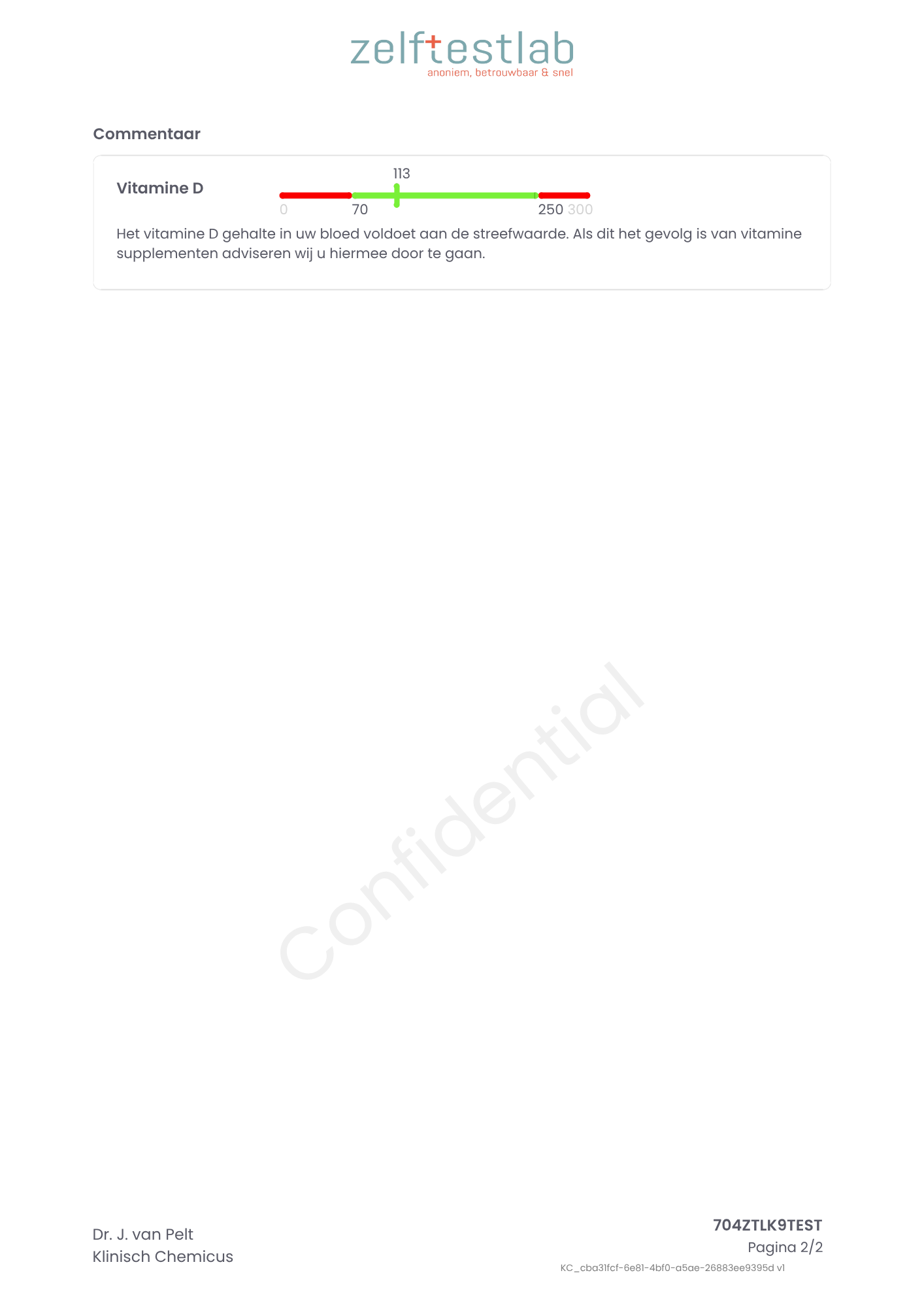 Je ontvangt ons zelftestpakket dat eenvoudig en snel thuis af te nemen is, met duidelijke instructies over wat je precies moet doen, zodat je kunt rekenen op een betrouwbare en nauwkeurige uitslag. De test stuur je kosteloos terug naar ons laboratorium. De uitslag wordt voorzien van referentiewaarden en deskundig commentaar, zodat je precies weet waar je staat en welke vervolgstappen nodig kunnen zijn.